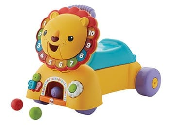3-in-1 Sit, Stride & Ride Lion. This toy grows with your baby as he moves from riding to walking. It has lights, music and fun sounds as well as three ways to get baby moving. Available at fisher-price.com. $45