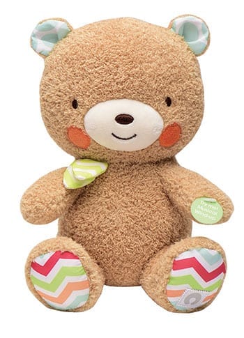 Boppy Musical Wind-Up Plush Bear. This soft plush bear plays a calming lullaby melody to put baby to sleep. It has crinkle elements for added interest and prints for visual stimulation Available at boppy.com for $14