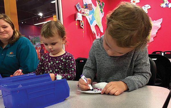 Let Your Creativity Flow. This area lets kids do art – ours made fish out of paper plates – in a quieter, glassed-in area.