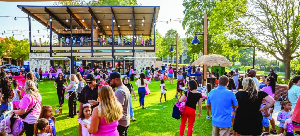 Suwanee Town Center is a top spot for families who live in the area. The 10-acre park has large green spaces for picnics and free play, an interactive splash fountain for kids to cool off in the summer, a playground at PlayTown Suwanee that was built by community volunteers, and a 1,000-seat amphitheater that hosts a regular lineup of family-friendly events and performances.