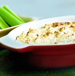It is hard not to love artichoke dip. This uses hummus in place of mayonnaise for a lower calorie and lower fat option. Serve it hot out of the oven. This dish is always a party pleaser.