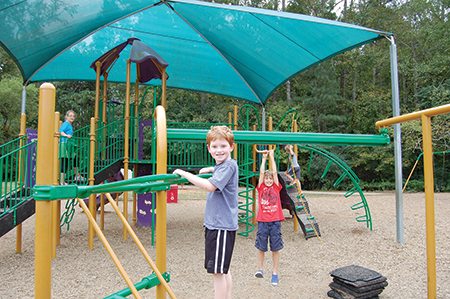 Our favorite is “Wacky World,” the wooden kingdom with towers, bridges and passages, with sections for older and younger kids. The architecture of this play structure seems to inspire imaginative play, and on any given day, you can find plenty of kids meeting up for playdates here, or making new friends while navigating the rope bridge, climbing to a tower lookout post, or taking a spin in the tire swing. We especially like the bench seats in the play area, covered picnic tables and bathrooms close at hand.