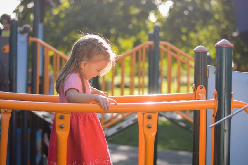 Features: Two separate playgrounds sit right across from each other. The larger is best suited for older kids, ages 5-12. A giant pirate ship-shaped play structure with a three-level tree house provides lots of playing, climbing and sliding opportunities. The tree house is for children who aren’t afraid of heights. It is a good climb up to two giant tube slides that land on a soft mulch-like surface that covers the ground of both playgrounds. There is also a separate climbing wall and four swings. (Each playground has an inclusive swing that disabled children can also use.) The toddler playground has typical mini-slides and climb-ups in addition to two bucket swings and two regular swings. Both playgrounds have fences separating them from parking lots. A small, concrete basketball court, open green space, and a community garden also occupy the park.