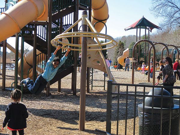 What I love about the play area is the shade provided by the canopies built right into the structure, the views and ample seating. Parents can choose benches surrounding the playground or sit in pavilions. You also can opt for the gazebo and catch a cooling breeze coming off Lake Acworth as you watch boats sailing by and people on the beach.