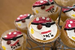 Serve bowls of “grog” (soup). Offer chicken legs and hot dogs they can eat with their hands. Or go with fish ‘n’ chips and a mug of apple cider. Serve individual pirate cupcakes or make a Treasure Chest Cake by baking a rectangular cake. Frost it with chocolate icing and decorate with colorful sprinkles, chocolate gold coins, and candy jewelry. To make the chest lid, clean the cake pan, frost it, and set it at right angles to the cake.