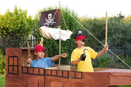 Turn the party room into Pirate Cove complete with a Pirate Ship. Get a few large appliance boxes and line them up to form the foundation of your pirate ship. Cut the tops off, paint the boxes brown, make portholes, and lay out a “walk-the-plank” entrance. Tie on balloons decorated like Jolly Rogers and you’re ready to set sail.