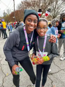 LaTisha Guster is a coach for Girls on the Run Georgia. Each season ends with a celebratory 5K, which Guster completed with her daughter, Laila. “She was having a ball and coaching me through. I encourage parents to join their kids on their run journey, even if it’s starting out on a walk. Moving with my child has been such a gift.”